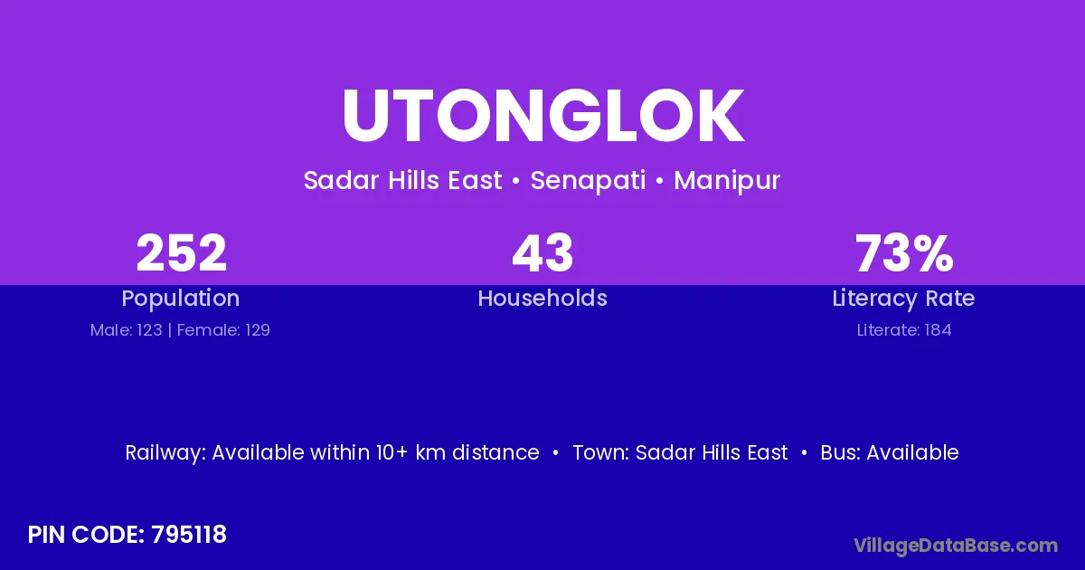 According to Census 2011 information, the village code of Utonglok village is 795118.
