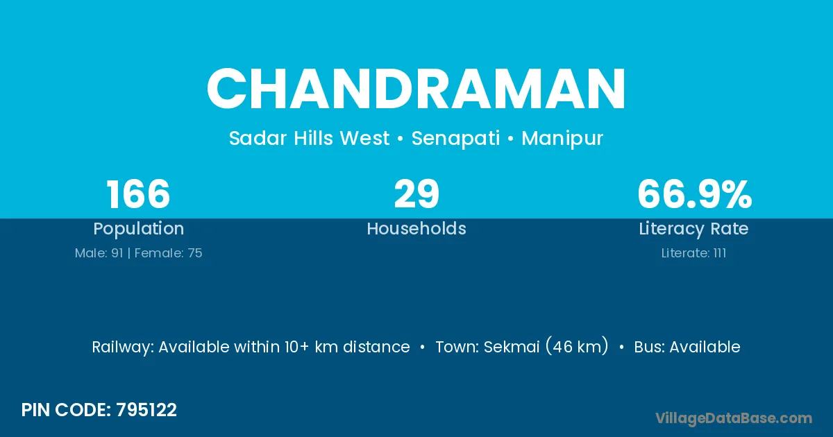 Sekmai (46 km) is the nearest town to Chandraman village for major economic activities and is located approximately 46 km away.