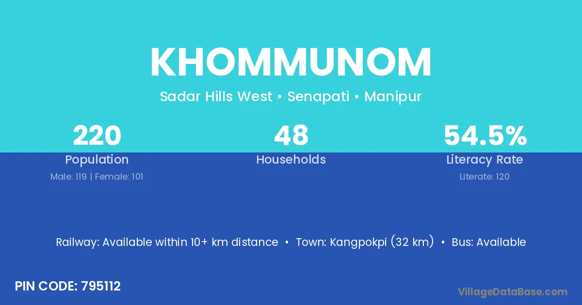 Khommunom village has a total population of 220 people, of which 119 are males and 101 are females.