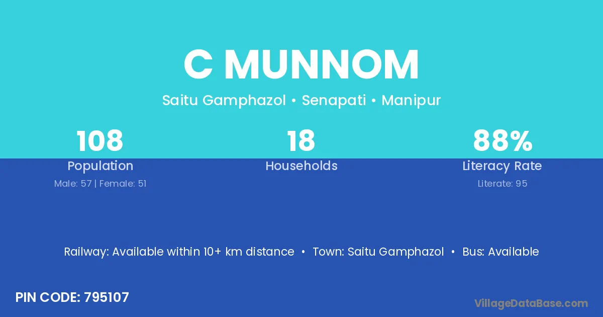 C Munnom village has a total population of 108 people, of which 57 are males and 51 are females.