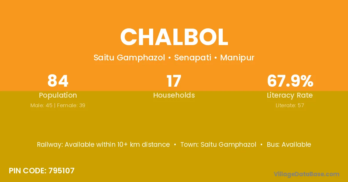 Chalbol village has a total population of 84 people, of which 45 are males and 39 are females.