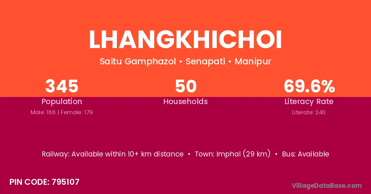 Imphal (29 km) is the nearest town to Lhangkhichoi village for major economic activities and is located approximately 29 km away.