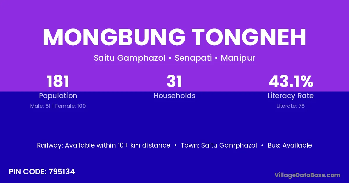 According to Census 2011 information, the village code of Mongbung Tongneh village is 795134.