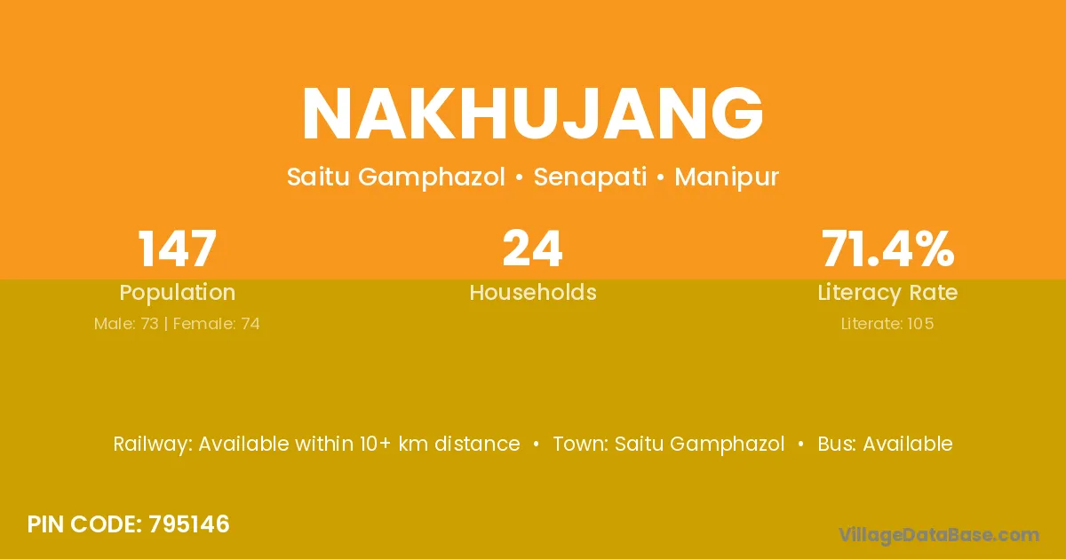 Nakhujang village has a total population of 147 people, of which 73 are males and 74 are females.