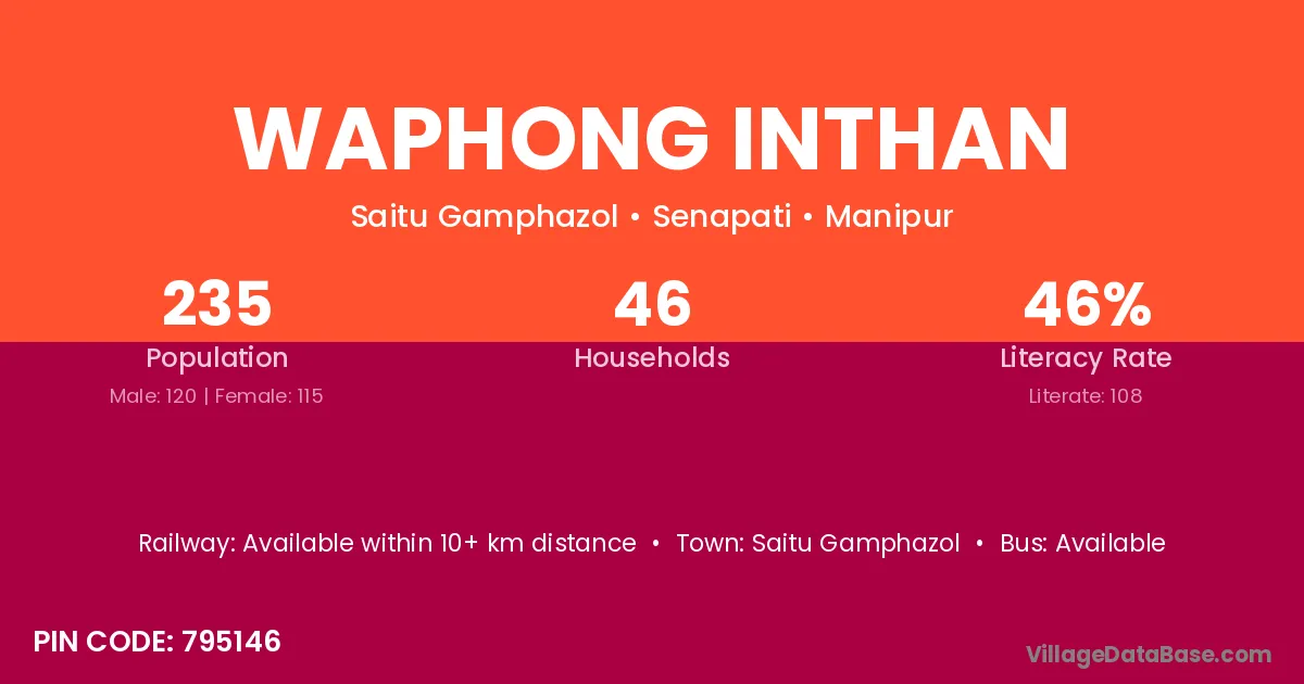 Waphong Inthan village has a total population of 235 people, of which 120 are males and 115 are females.
