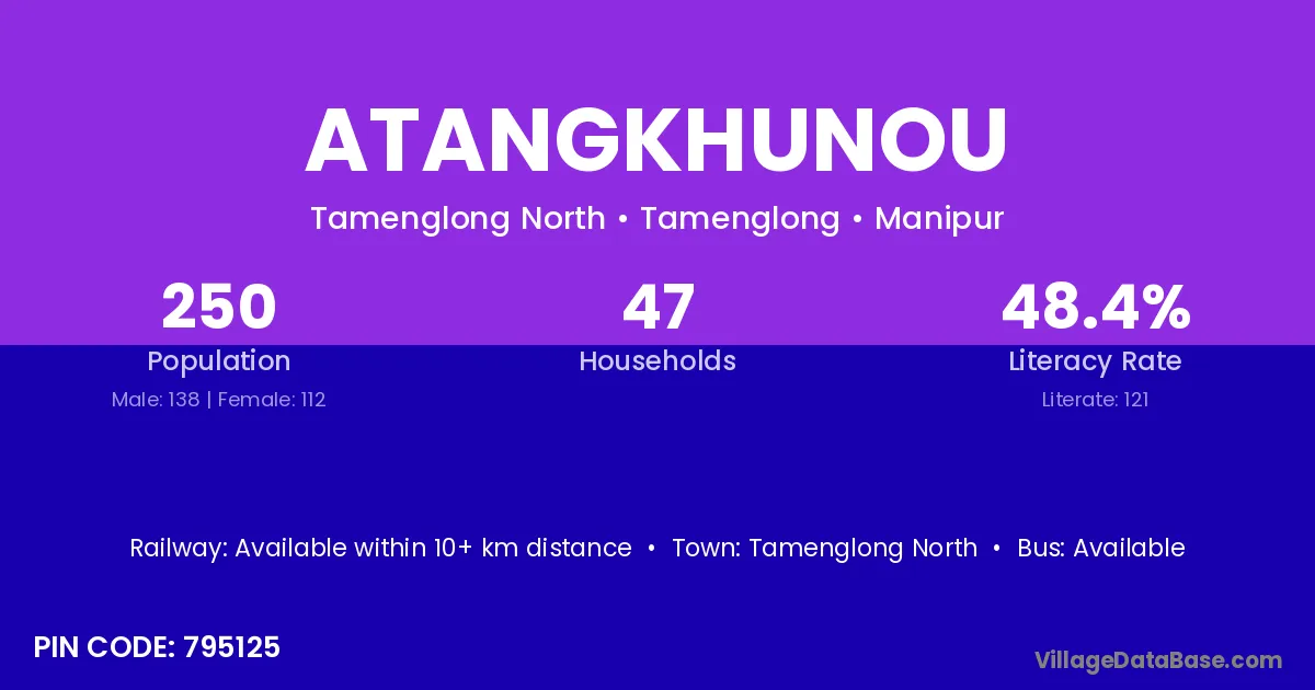 Atangkhunou village has a total population of 250 people, of which 138 are males and 112 are females.