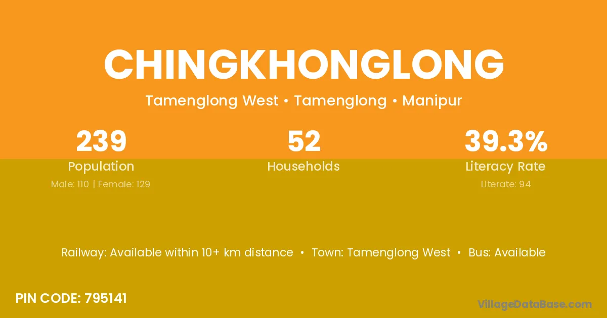 Chingkhonglong village has a total population of 239 people, of which 110 are males and 129 are females.