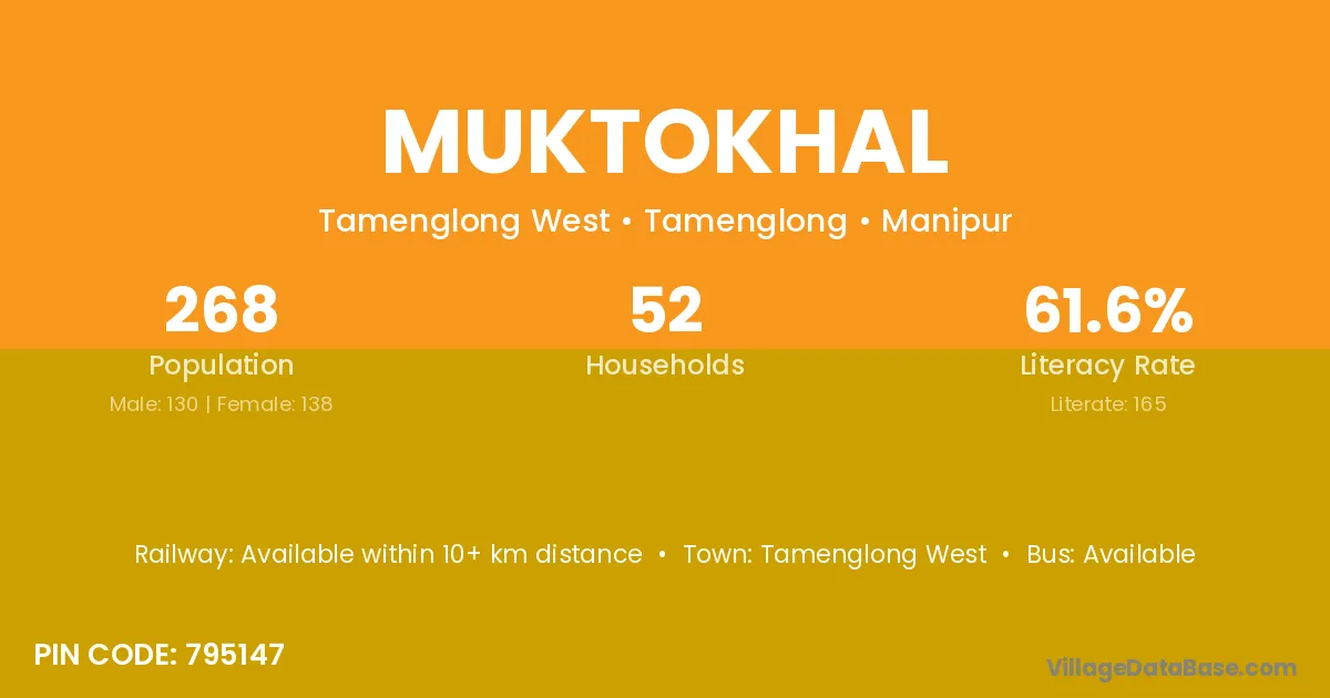 Tamenglong West is the nearest town to Muktokhal village for major economic activities