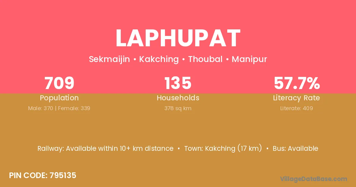 Kakching (17 km) is the nearest town to Laphupat village for major economic activities and is located approximately 17 km away.