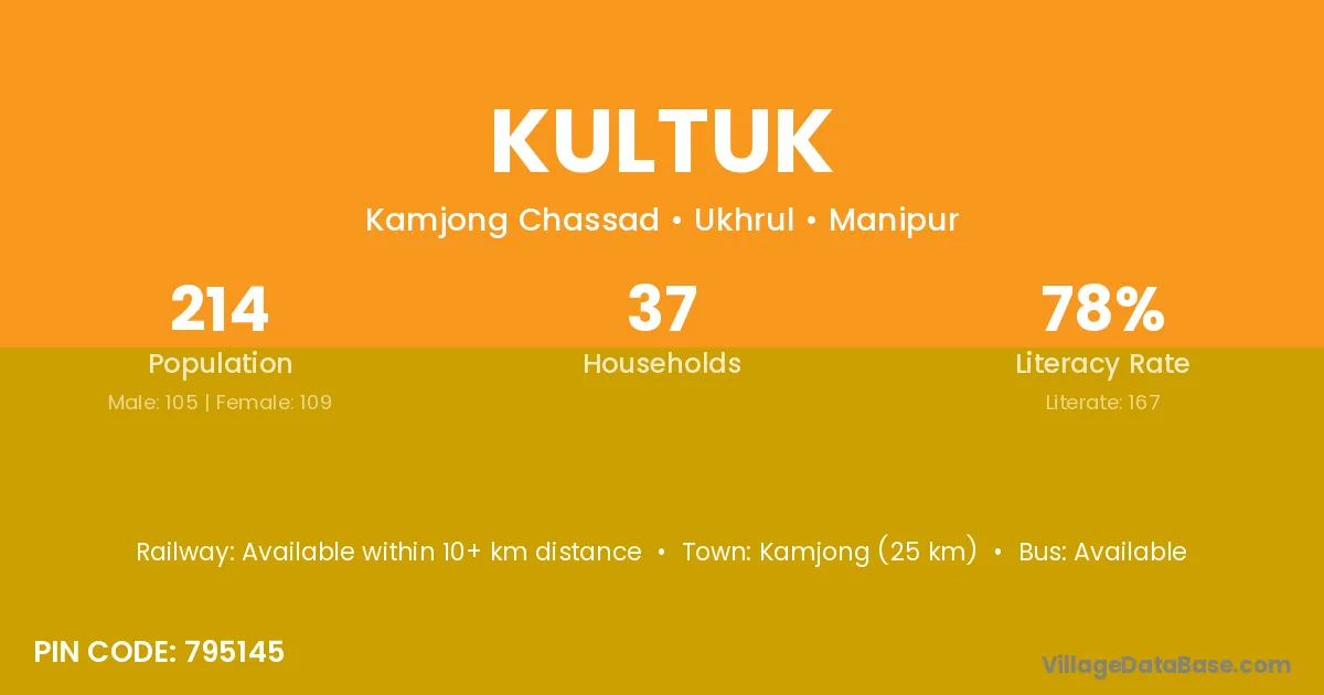Kamjong (25 km) is the nearest town to Kultuk village for major economic activities and is located approximately 25 km away.