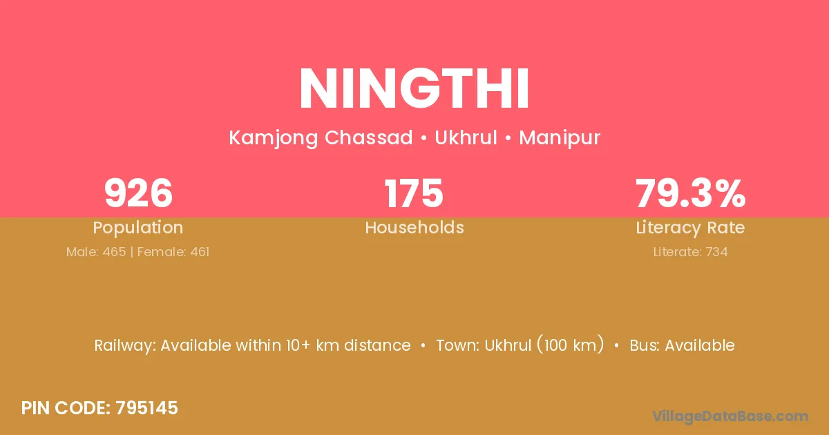 Ningthi village has a total population of 926 people, of which 465 are males and 461 are females.
