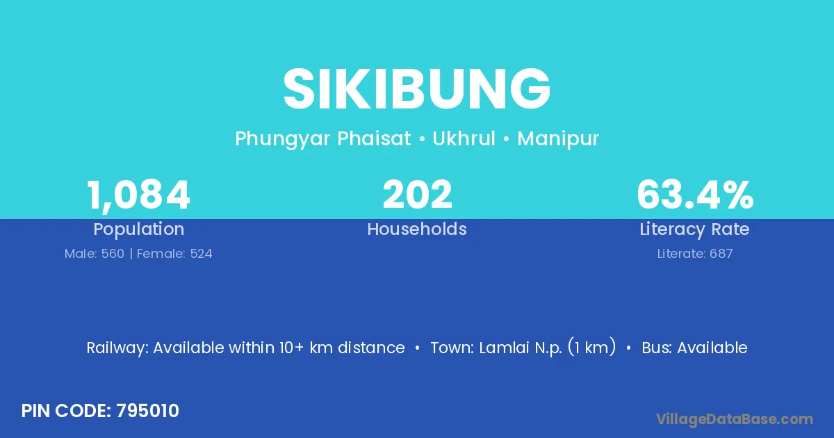 Lamlai N.p. (1 km) is the nearest town to Sikibung village for major economic activities and is located approximately 1 km away.