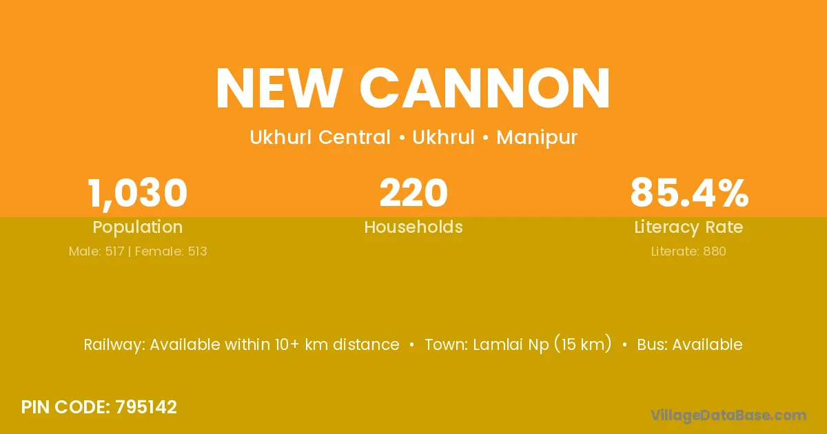 Lamlai Np (15 km) is the nearest town to New Cannon village for major economic activities and is located approximately 15 km away.