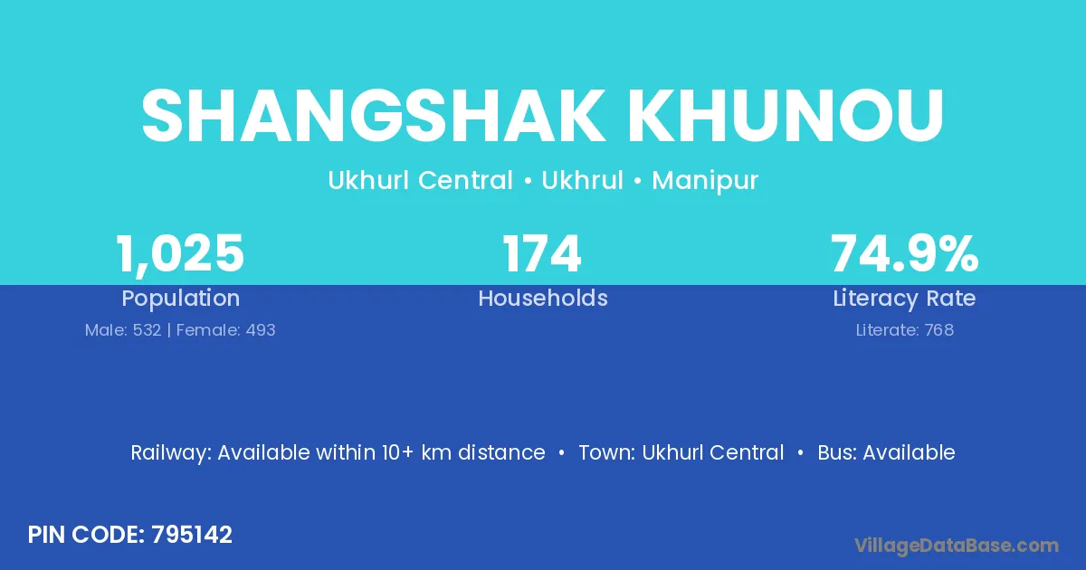Shangshak Khunou village has a total population of 1,025 people, of which 532 are males and 493 are females.