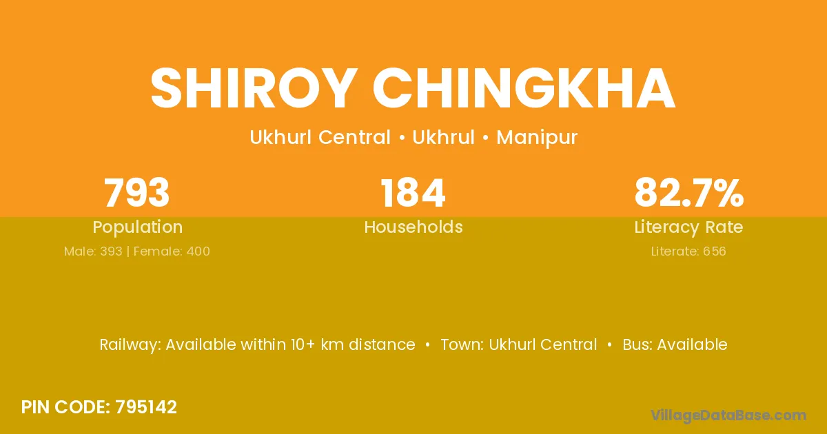 Ukhurl Central is the nearest town to Shiroy Chingkha village for major economic activities