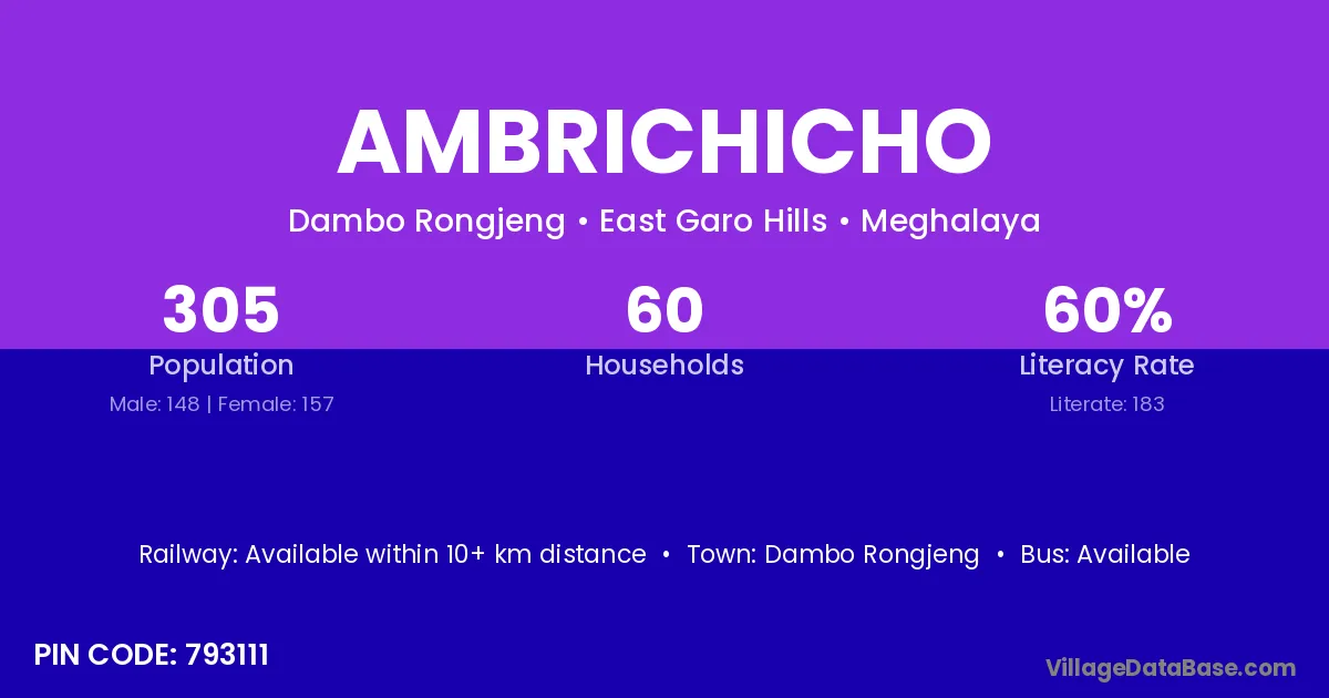 Ambrichicho village has a total population of 305 people, of which 148 are males and 157 are females.