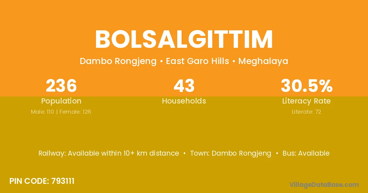 Dambo Rongjeng is the nearest town to Bolsalgittim village for major economic activities