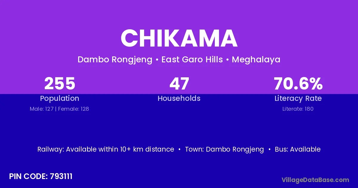 Chikama village has a total population of 255 people, of which 127 are males and 128 are females.