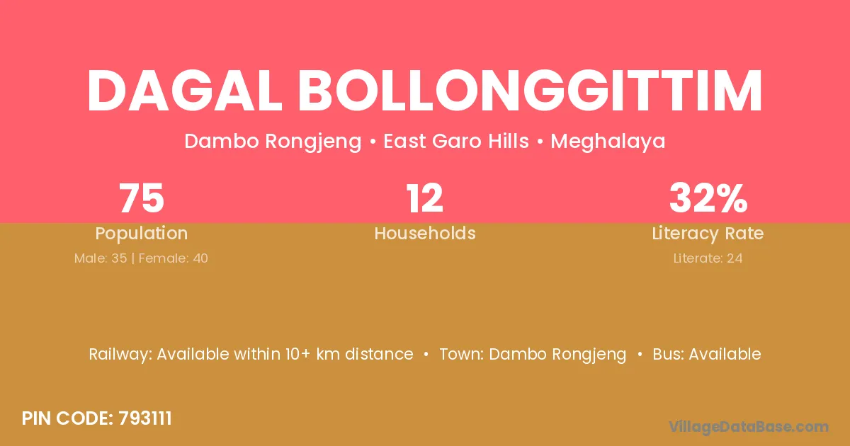 Dagal Bollonggittim village has a total population of 75 people, of which 35 are males and 40 are females.