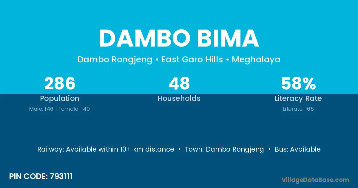 Dambo Bima village is located in the Dambo Rongjeng Subdivision of the East Garo Hills district in Meghalaya .