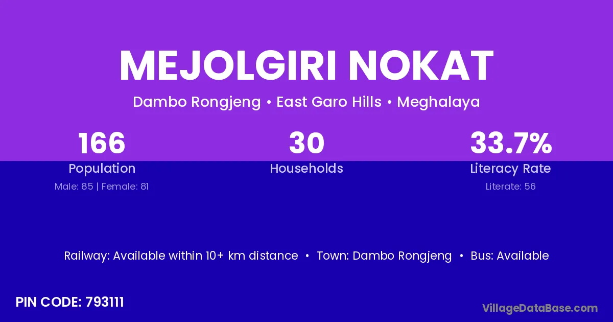 Mejolgiri Nokat village has a total population of 166 people, of which 85 are males and 81 are females.