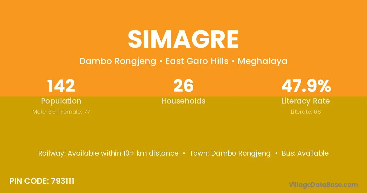 According to Census 2011 information, the village code of Simagre village is 793111.