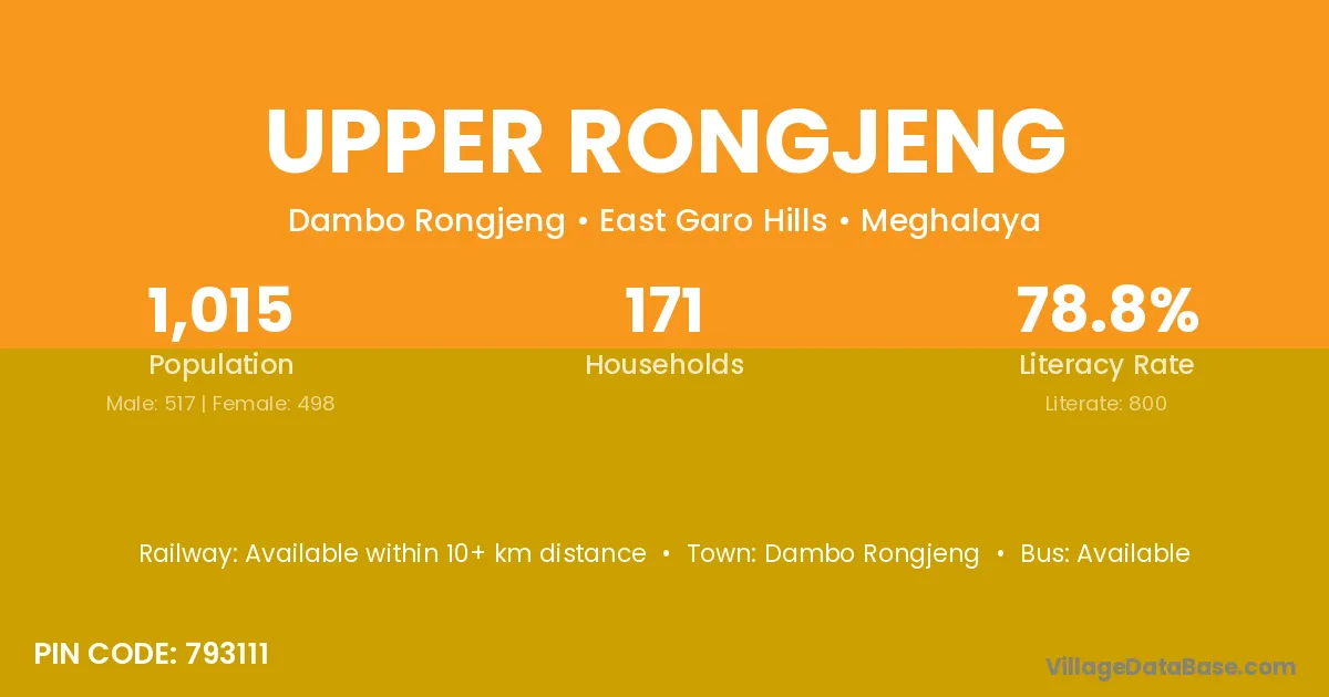 Upper Rongjeng village has a total population of 1,015 people, of which 517 are males and 498 are females.