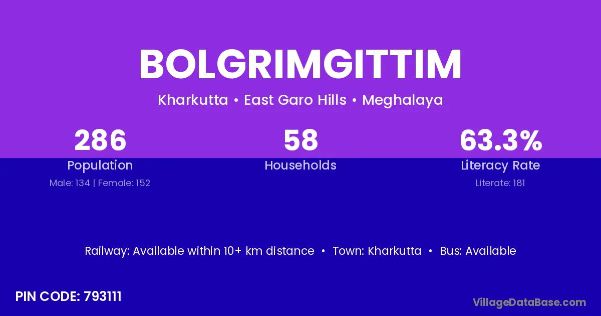 Kharkutta is the nearest town to Bolgrimgittim village for major economic activities