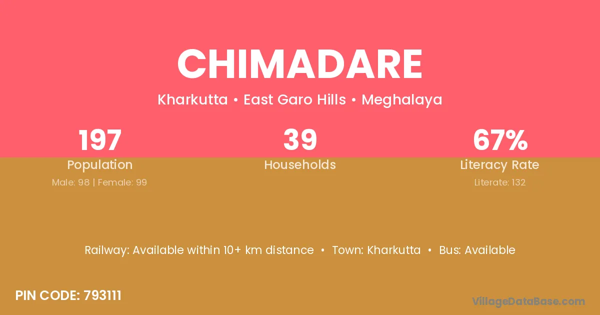 According to Census 2011 information, the village code of Chimadare village is 793111.