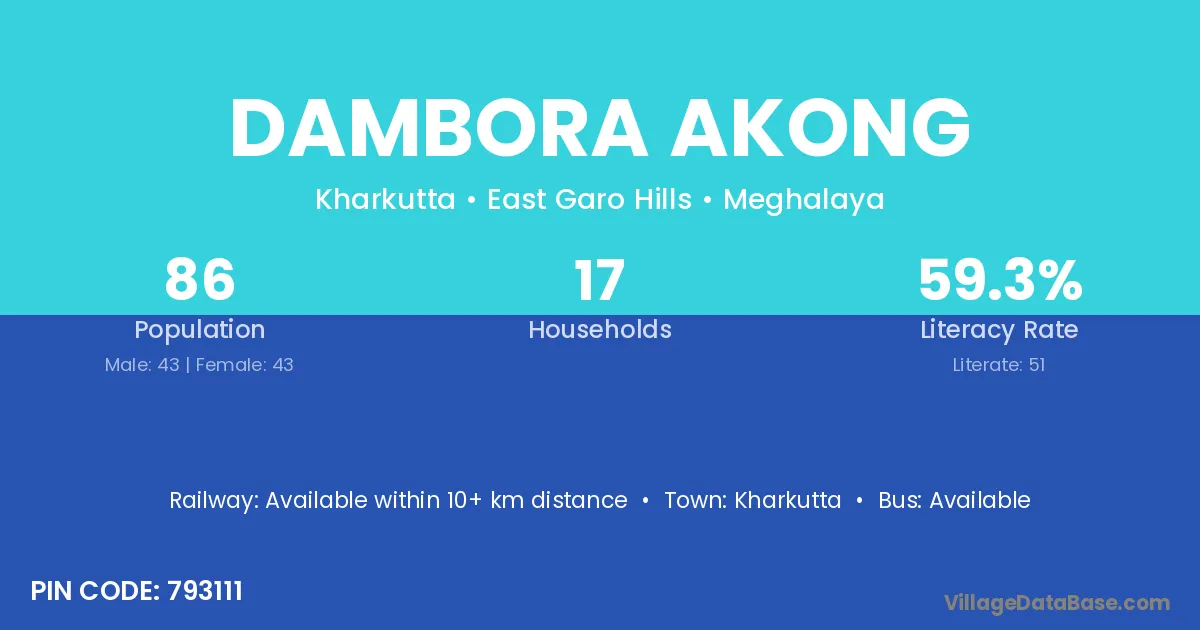 Kharkutta is the nearest town to Dambora Akong village for major economic activities