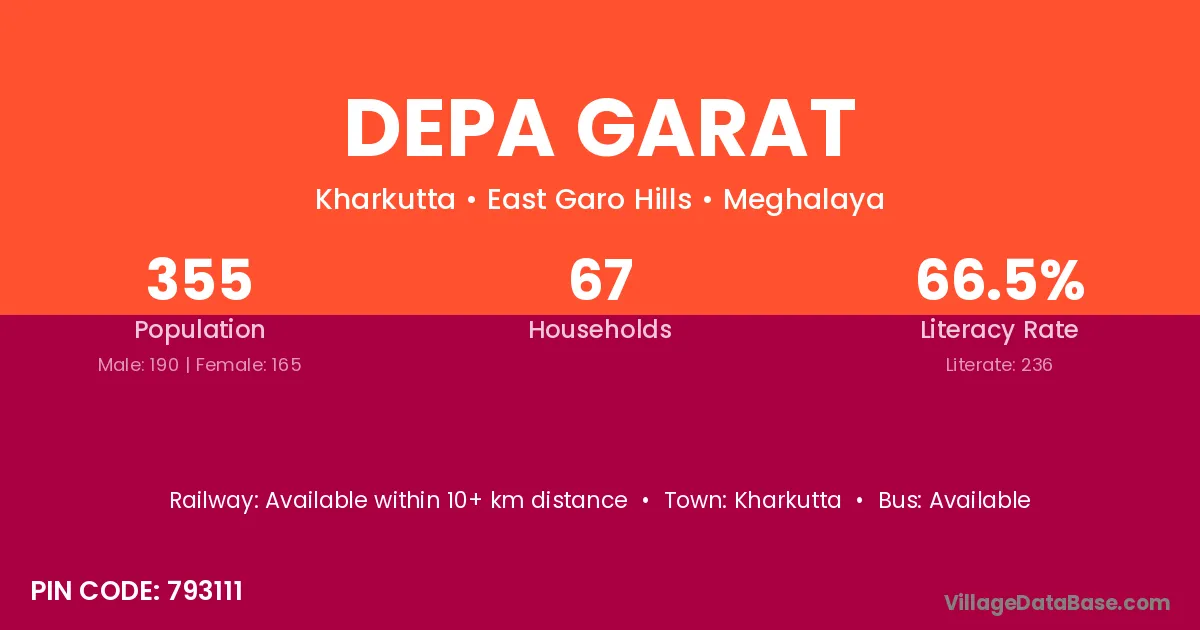 Depa Garat village has a total population of 355 people, of which 190 are males and 165 are females.