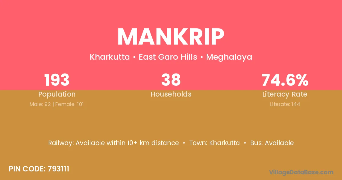 According to Census 2011 information, the village code of Mankrip village is 793111.