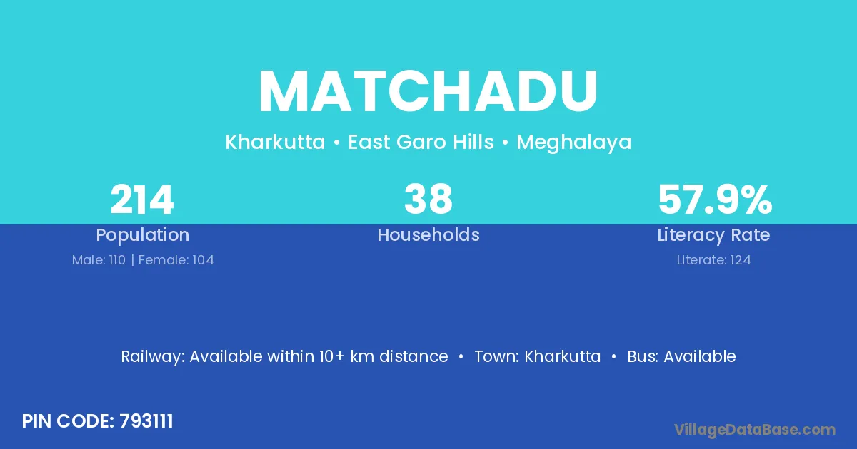 Matchadu village has a total population of 214 people, of which 110 are males and 104 are females.