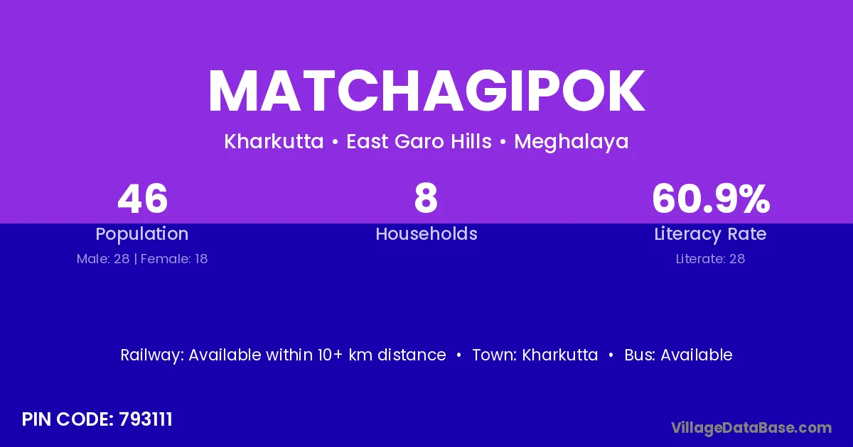 Matchagipok village has a total population of 46 people, of which 28 are males and 18 are females.