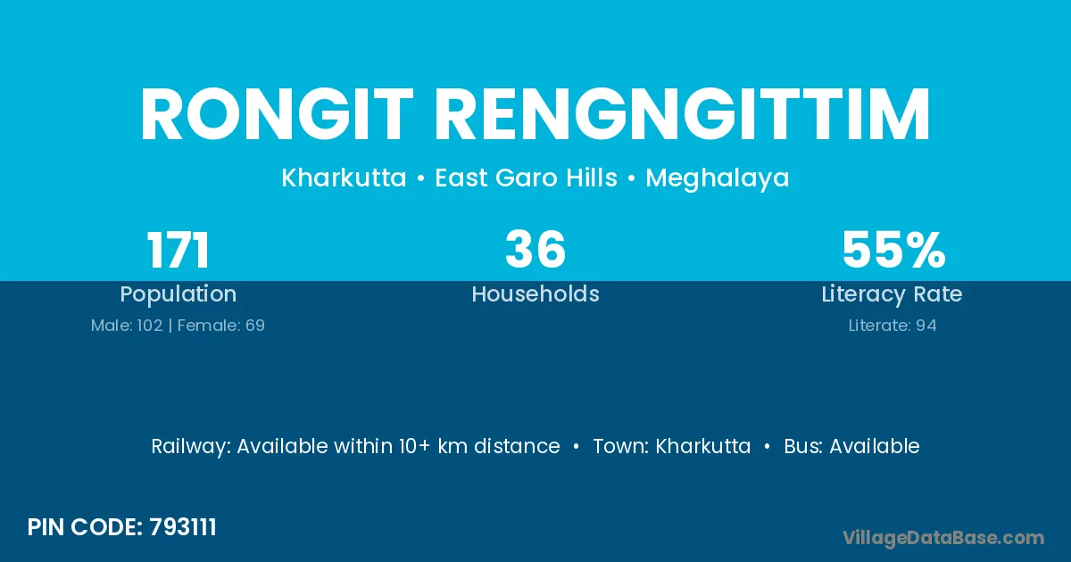 Kharkutta is the nearest town to Rongit Rengngittim village for major economic activities