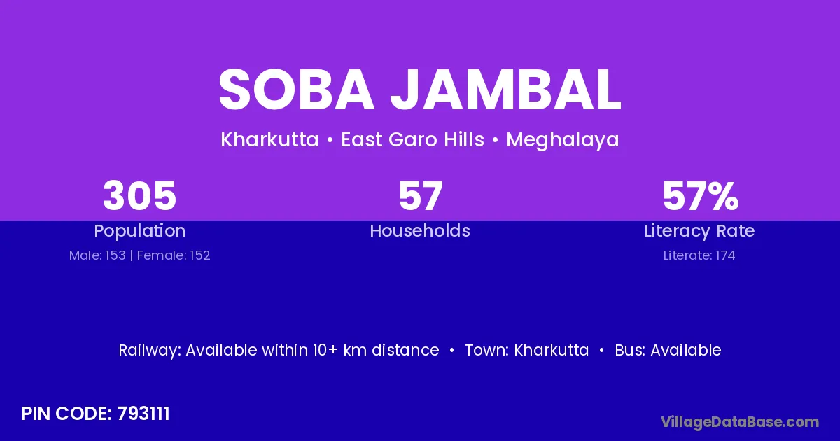 Soba Jambal village has a total population of 305 people, of which 153 are males and 152 are females.