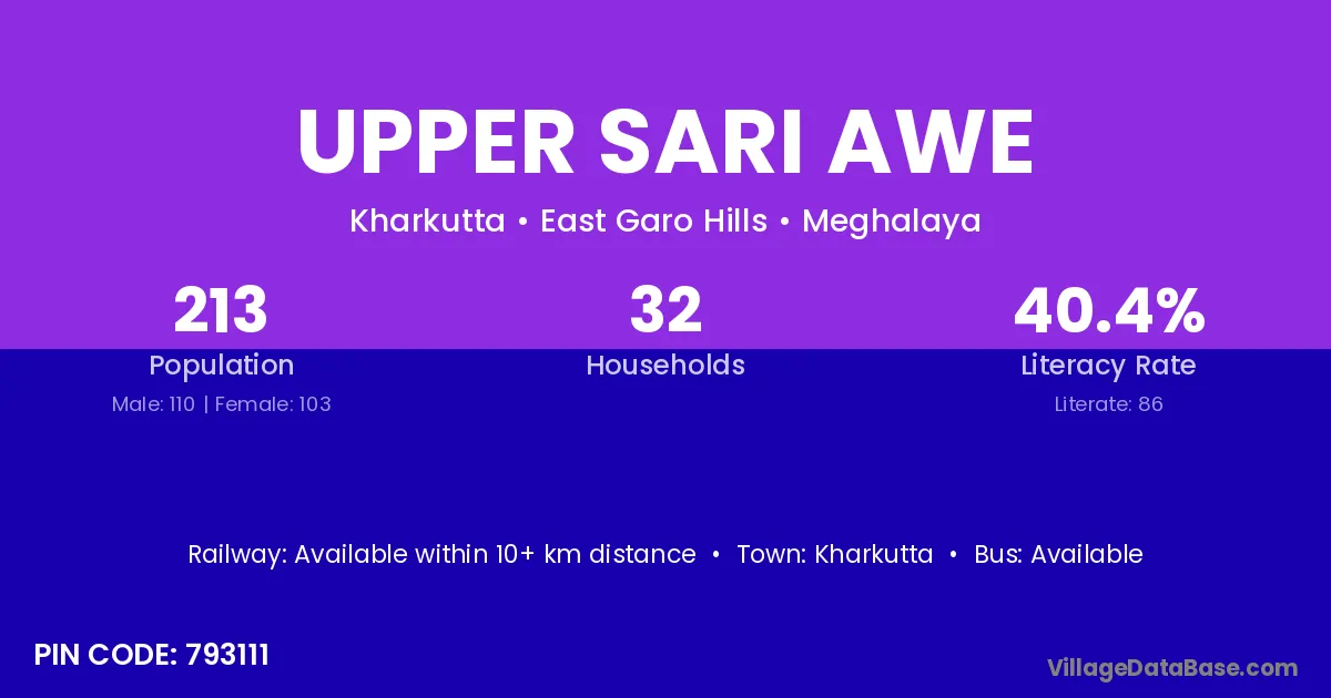 Upper Sari Awe village has a total population of 213 people, of which 110 are males and 103 are females.