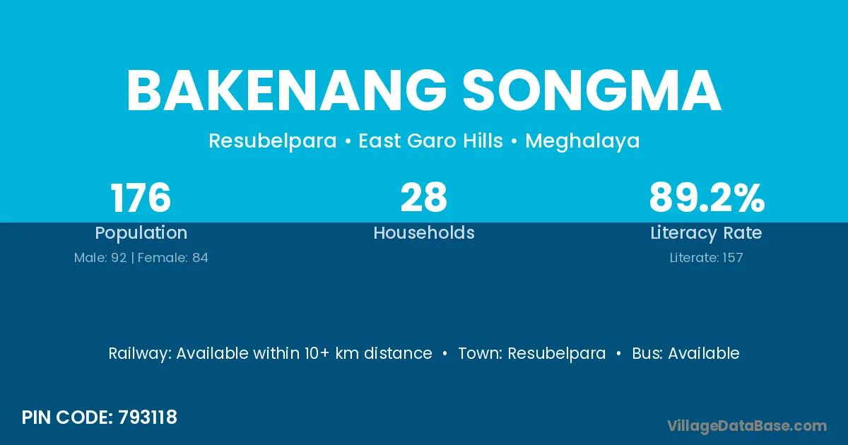 Resubelpara is the nearest town to Bakenang Songma village for major economic activities