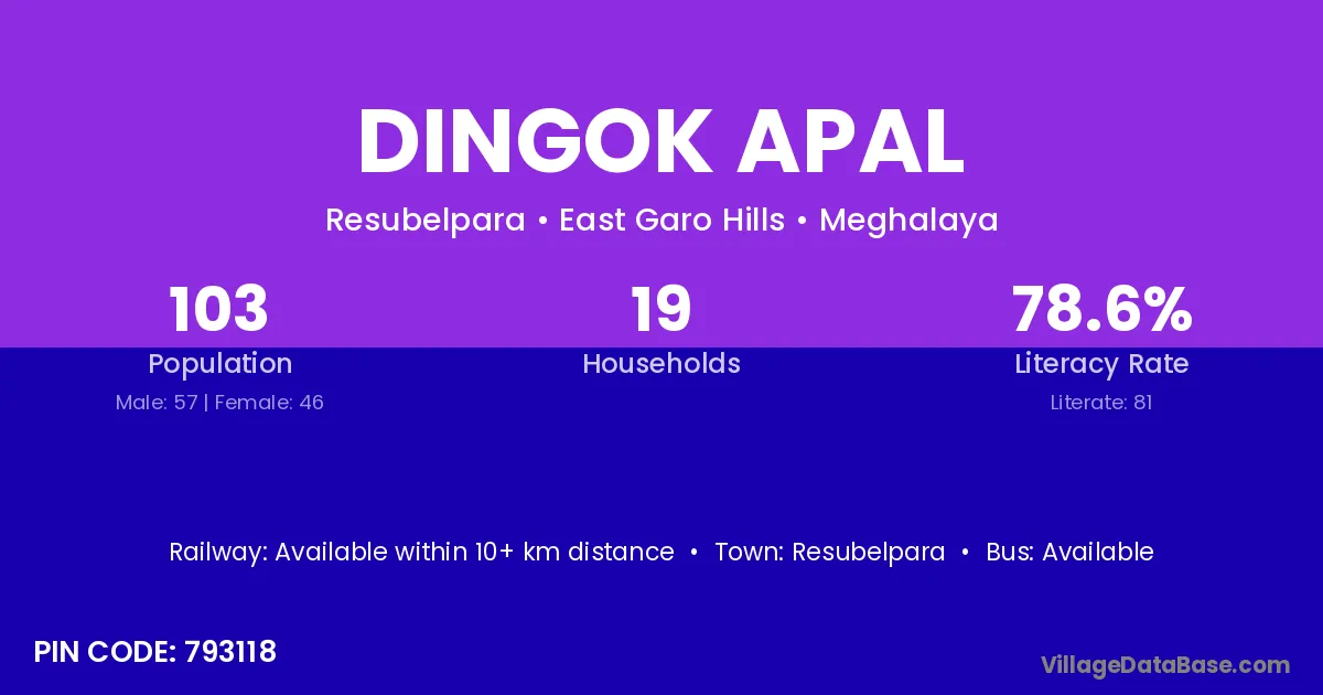 Resubelpara is the nearest town to Dingok Apal village for major economic activities