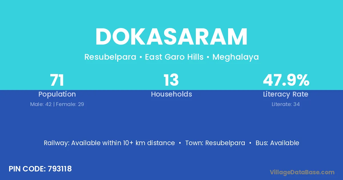 Resubelpara is the nearest town to Dokasaram village for major economic activities