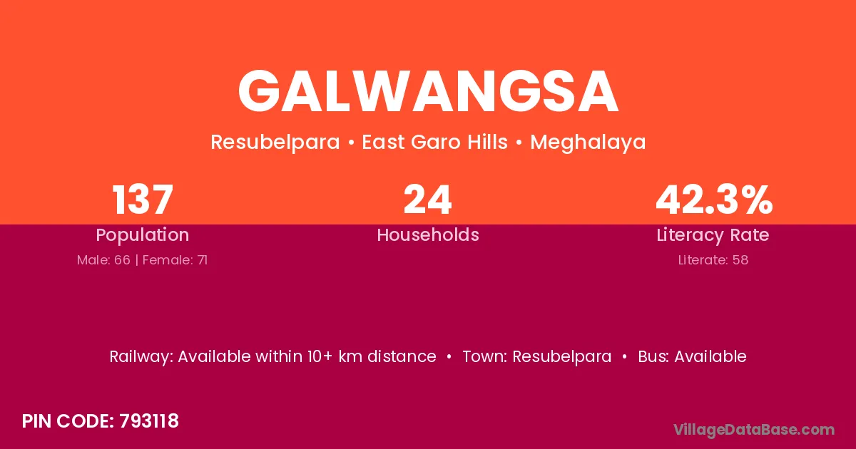 Galwangsa village has a total population of 137 people, of which 66 are males and 71 are females.