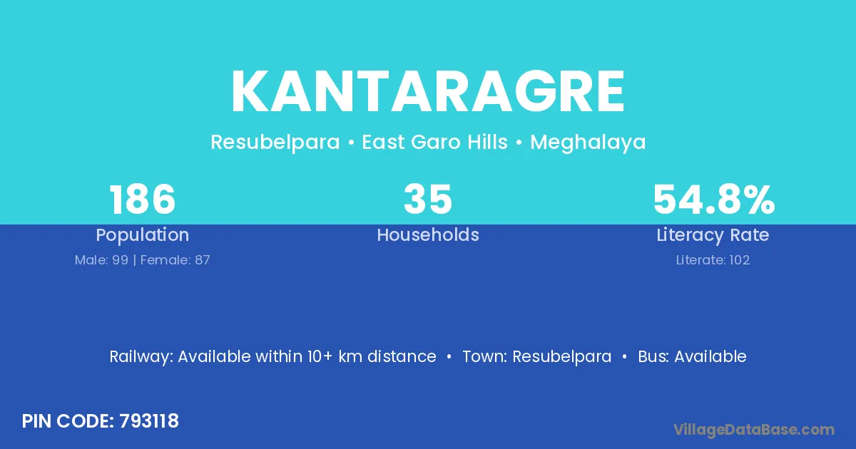 Resubelpara is the nearest town to Kantaragre village for major economic activities