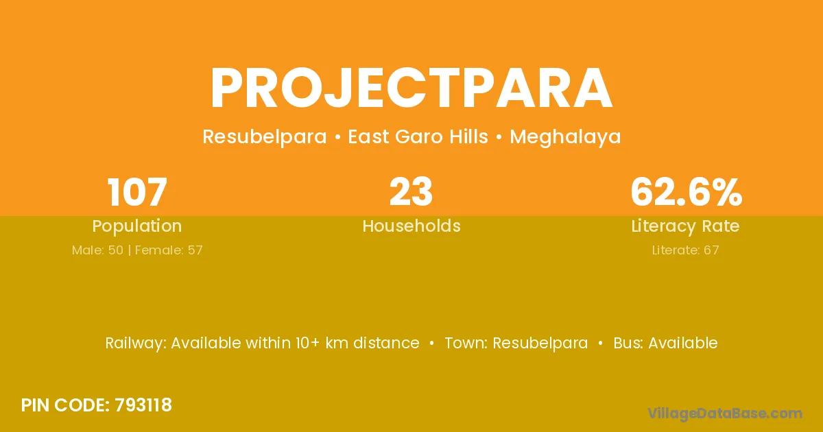 Projectpara village has a total population of 107 people, of which 50 are males and 57 are females.