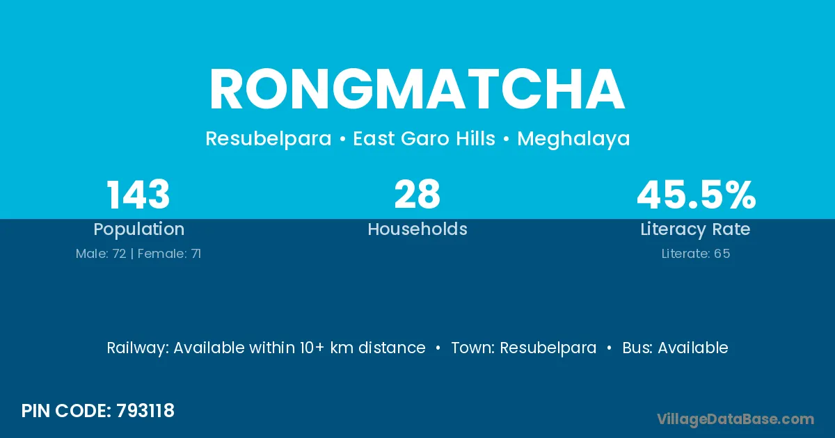 Resubelpara is the nearest town to Rongmatcha village for major economic activities