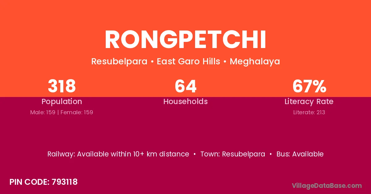 Rongpetchi village has a total population of 318 people, of which 159 are males and 159 are females.