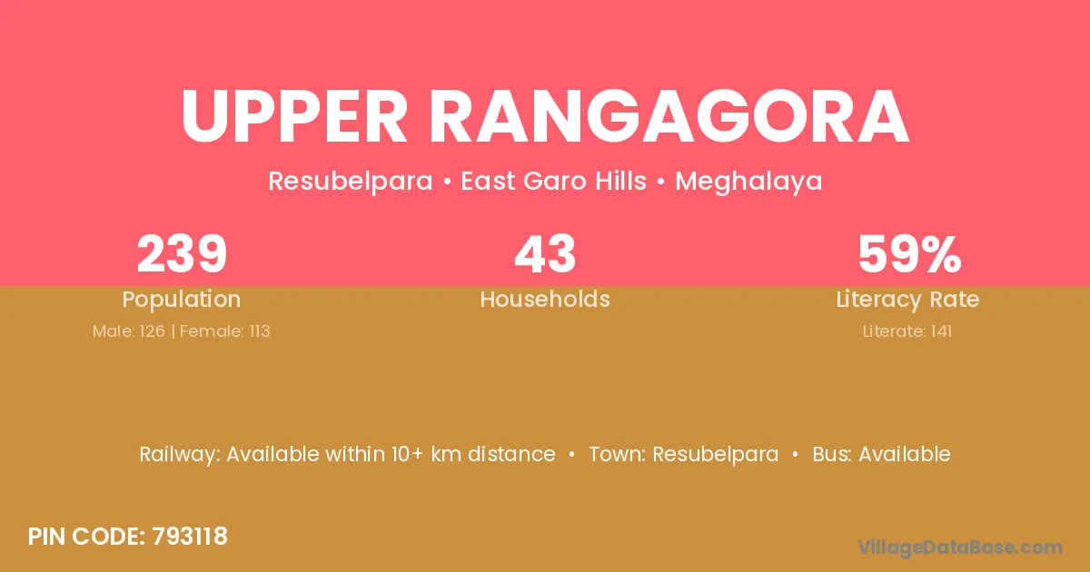 Upper Rangagora village has a total population of 239 people, of which 126 are males and 113 are females.