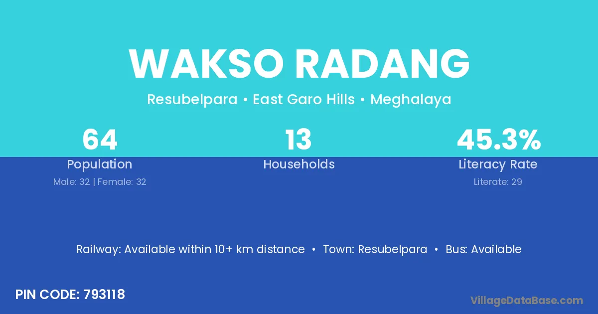 Resubelpara is the nearest town to Wakso Radang village for major economic activities
