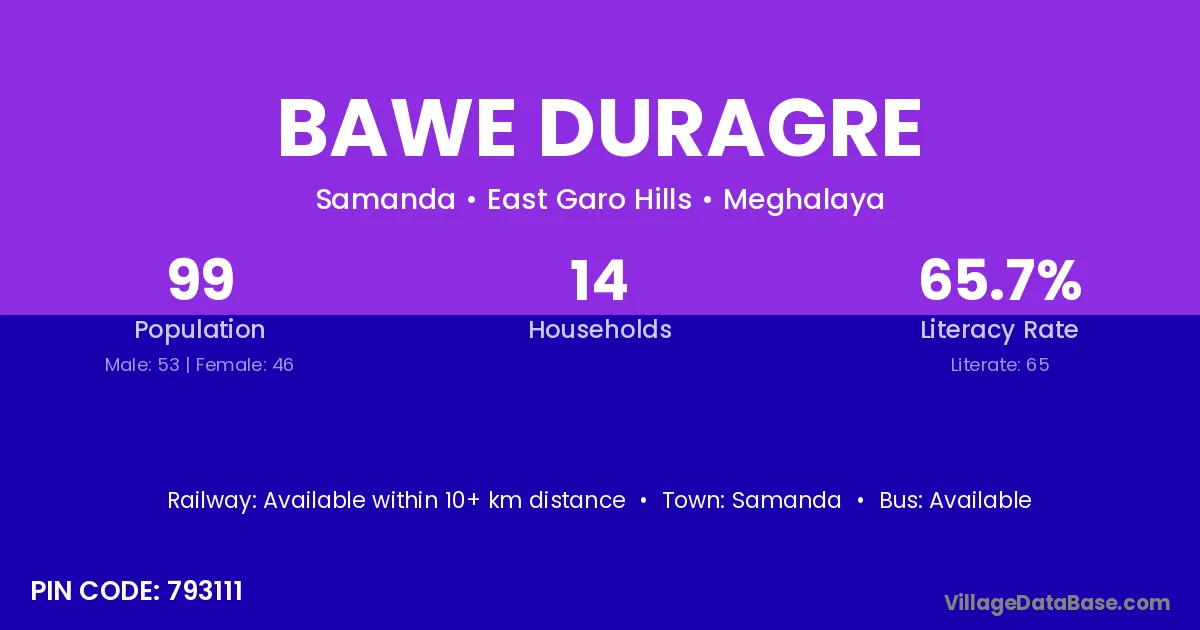 Bawe Duragre village is located in the Samanda Subdivision of the East Garo Hills district in Meghalaya .