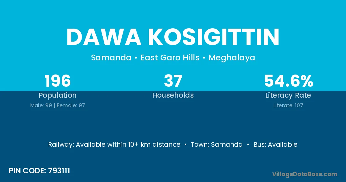 Dawa Kosigittin village has a total population of 196 people, of which 99 are males and 97 are females.