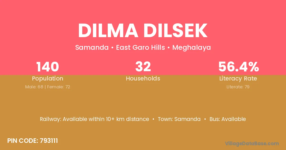 Dilma Dilsek village is located in the Samanda Subdivision of the East Garo Hills district in Meghalaya .